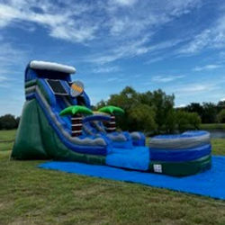 This 18 foot tall slide will provide hours of fun and entertainment for your gathering. This is a single lane water slide suitable for all ages. The delivery, setup and teardown are all included in the rental price. The only thing you have to do is be safe and have a good time.