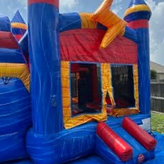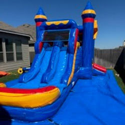 Bring on the fun with our 6-foot tall dual-lane combo! This isn't just a bounce house—it's an all-in-one party solution. Kids can bounce to their hearts' content in the spacious bouncer, then climb up the wall to race a friend down the thrilling, dual-lane water slide. On hot days, connect a garden hose to the top of the slide to turn it into a refreshing splash fest. On cooler days, it works great as a dry slide, so the party never has to stop. The landing area at the bottom of the slide is a splash pool perfect for cooling off or just kicking back. Safety is our top priority, which is why all of our inflatables are cleaned and inspected before every rental. This combo is perfect for birthday parties, family get-togethers, or any event where you want to make a splash!